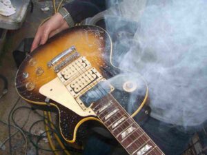 As the tribute began, the guitar didn’t just sit there—it came to life. It smoked, it glowed, and it radiated the “Space Ace” spirit one last time.