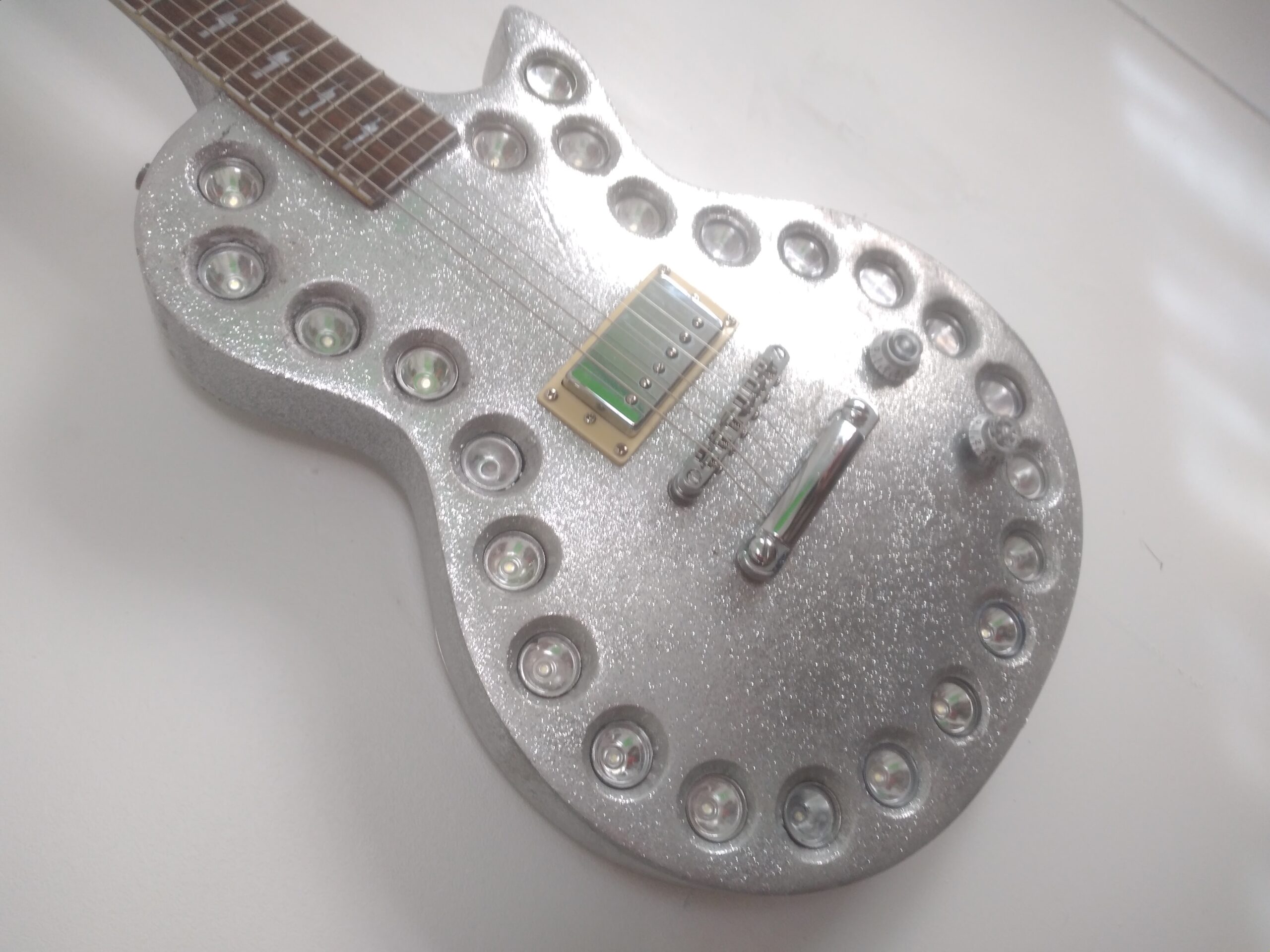 “At the time of his death, all of his special effects guitars were created by me. This final Honors build was the most advanced work I ever did for him. It was built to honor a friend.” — Jim Cara