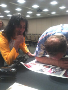 As I approached with a more professional manner than most other KISS fans probably did. I did my research about the genius and told him more about himself and what he did, than he probably cared to remember, he realized I was as closest to his league that he had seen yet from this KISS bunch.